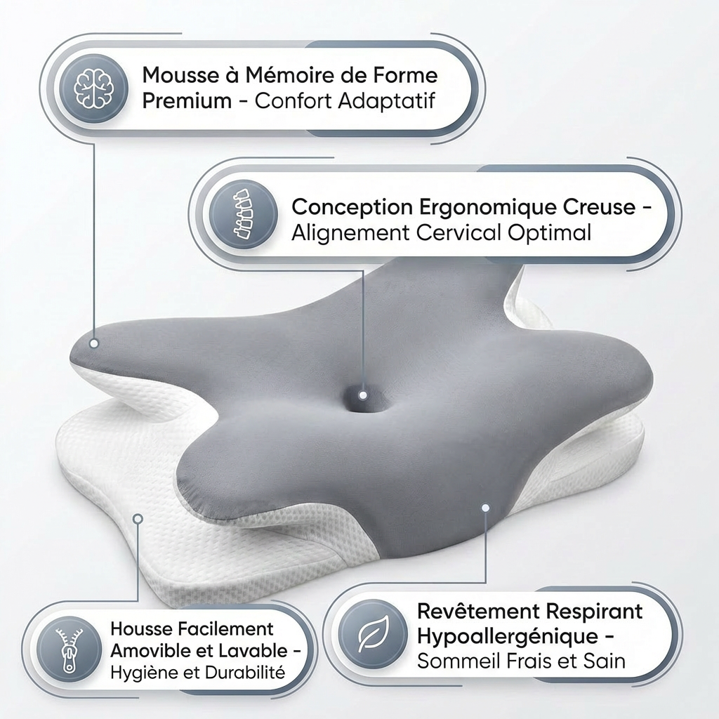 Oreiller ergonomique anti-douleurs cervicales